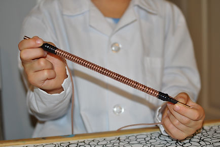 Take your wire and wrap it around your iron core. You will want to wrap the wire neatly and as tight and close together as possible. The more loops around the iron core you have the stronger your magnet will work. This is why you want to have a smaller diameter wire if possible because you can get more turns around your iron core. So take your time, an extra set of hands is helpful for this part. Use the electrical tape to secure the wire when you are done so it doesn’t unwind.
